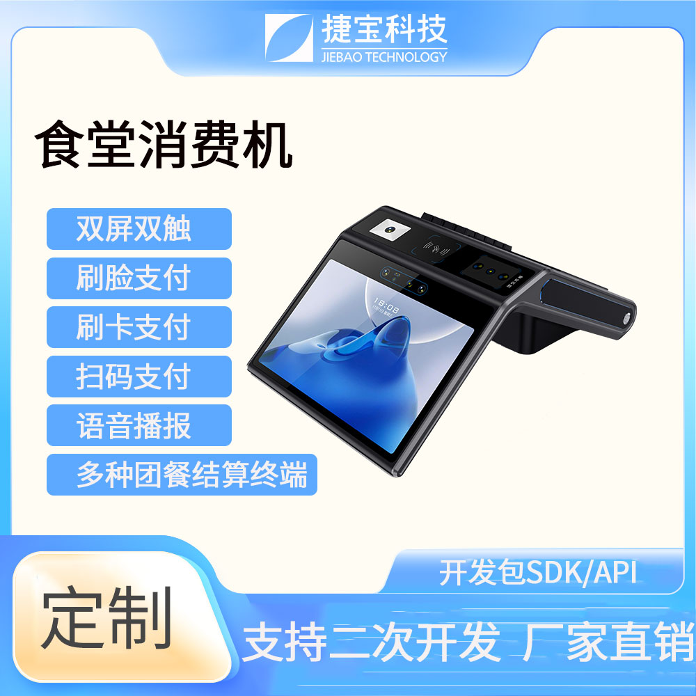 捷寶科技是國內(nèi)最早推出基于Android系統(tǒng)智能硬件的廠家之一。產(chǎn)品形態(tài)涵蓋手持、臺(tái)式、立式、掛式、柜式、單屏、雙屏;功能上圍繞NFC識(shí)別、條碼識(shí)別、生物識(shí)別,AI識(shí)別等技術(shù)大類,開發(fā)出可識(shí)別CPU卡、M1卡、射頻卡、二代身份證、社??ā⒁痪S條碼掃描、掃碼支付、指紋識(shí)別、人臉識(shí)別、掌靜脈識(shí)別、虹膜識(shí)別、AI菜品識(shí)別、智能語音識(shí)別等功能的各類產(chǎn)品。